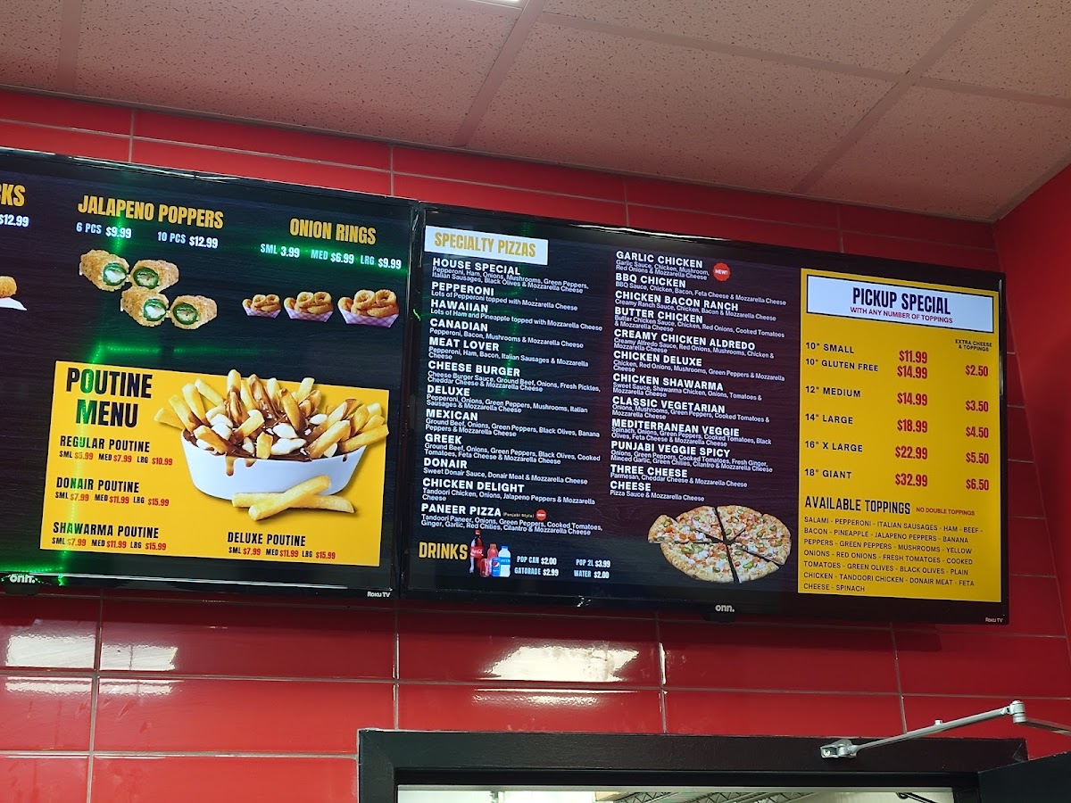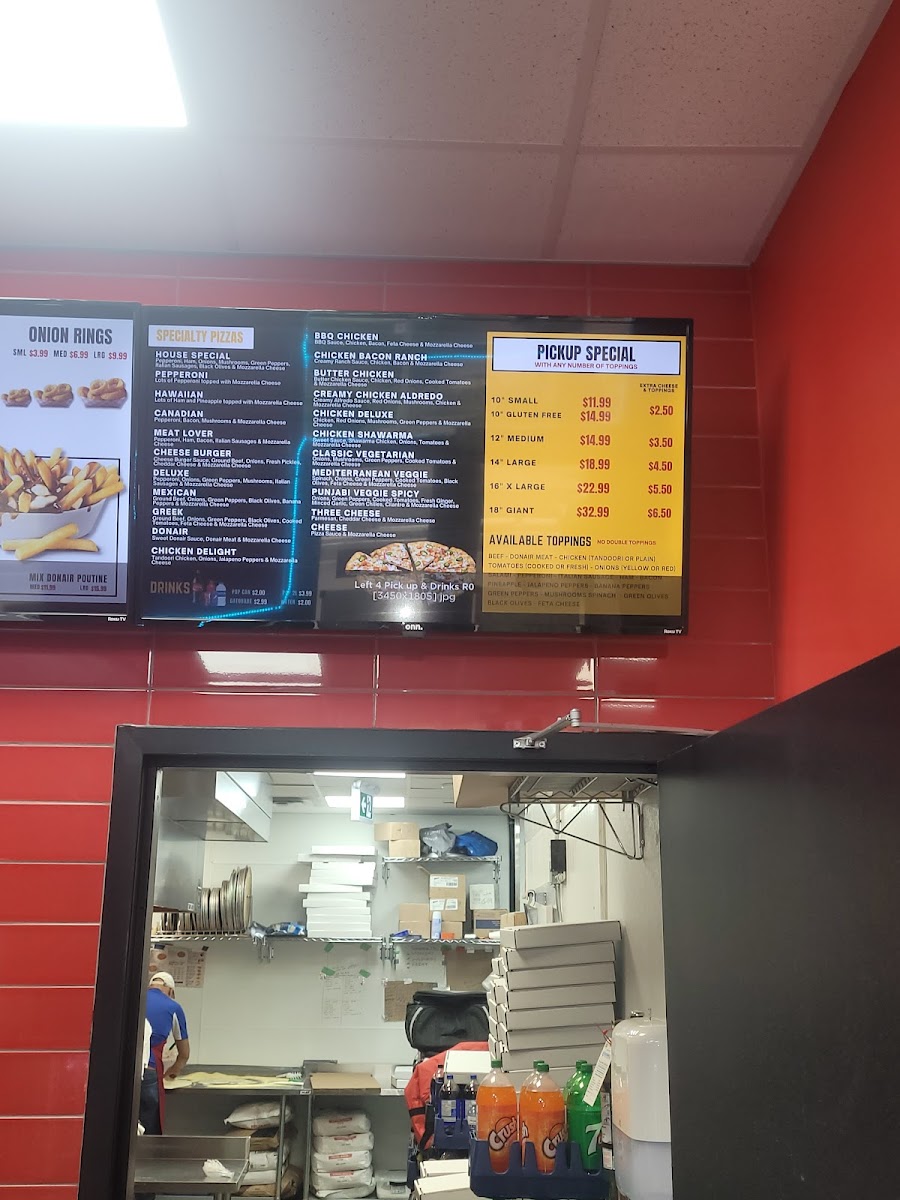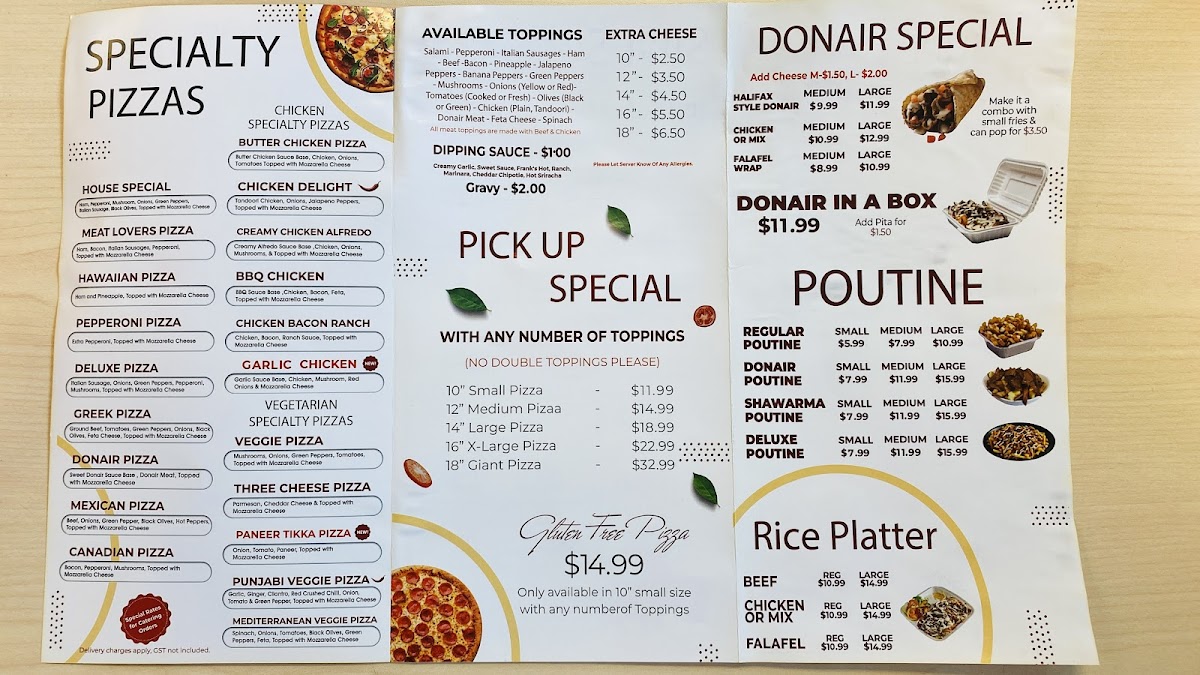 The menu features a mouth-watering selection of pizzas and donairs that will have your taste buds dancing. One standout option is the All Meat Pizza, loaded with a perfect blend of pepperoni, ham, bacon, Italian sausages, and melty mozzarella, offering a savory bite in every slice. If you’re looking for a Halal option, indulge in their delicious Halal Pizza, crafted with love and care, ensuring an authentic flavor with every crunchy bite.