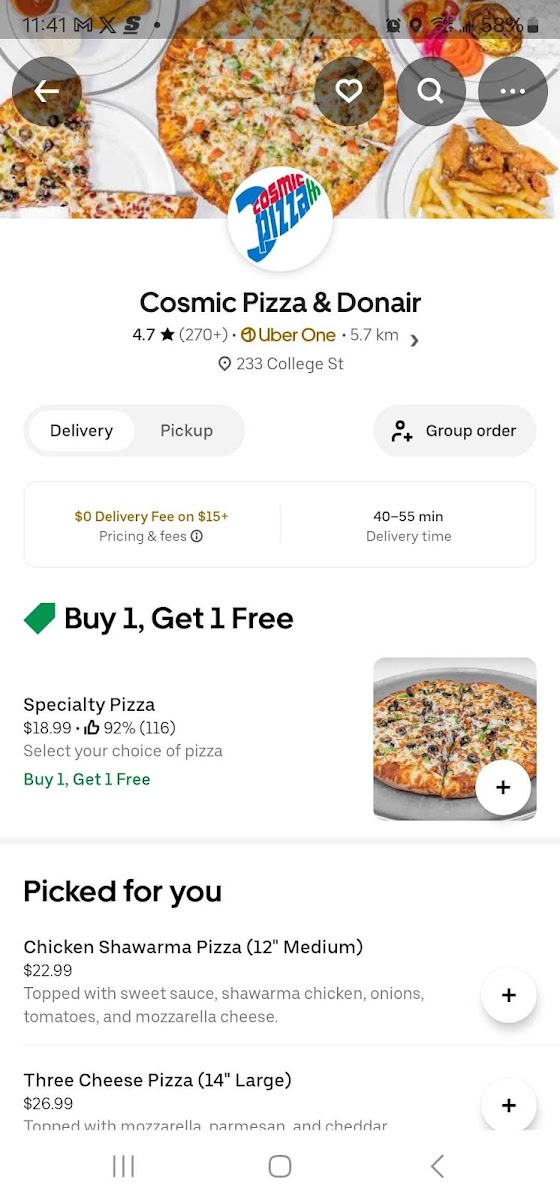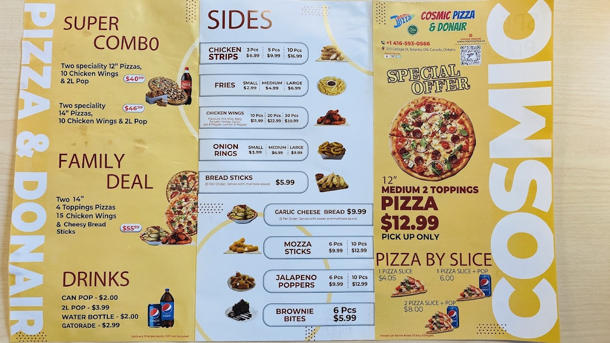 Whether you’re a local or a traveler, Cosmic Pizza & Donair is a must-visit spot for pizza lovers and donair enthusiasts alike. So why wait? Grab a slice or indulge in a flavorful donair today, and experience why this restaurant is a staple in downtown Toronto!